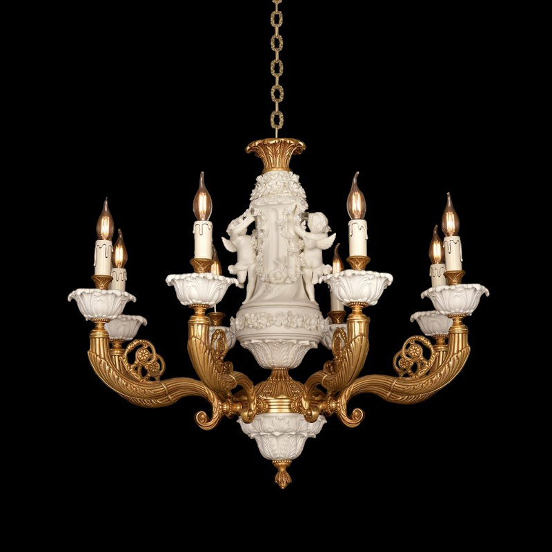Được lấy cảm hứng từ hình ảnh thiên thần trong văn hóa Hy Lạp và Hebrew, mẫu đèn chùm đồng 3160/8 mang đến một trải nghiệm nghệ thuật ánh sáng độc đáo và sang trọng cho không gian nội thất, từ phòng khách, phòng ngủ, phòng thờ…