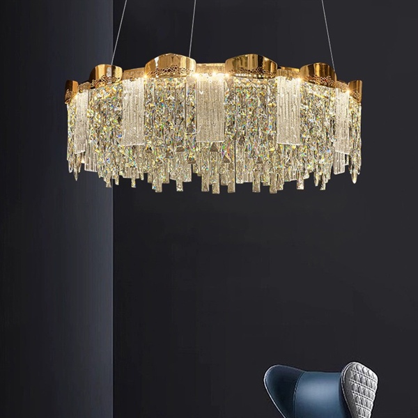 Mẫu đèn chùm pha lê cao cấp là một tuyệt tác nghệ thuật, được lấy cảm hứng từ những dòng thác pha lê rơi tự do kết hợp với vẻ đẹp uy nghi của chiếc vương miện quyền quý. Chiếc đèn tái hiện trọn vẹn vẻ đẹp chuyển động sống động và mượt mà, với mỗi tầng ánh sáng như những làn nước lấp lánh đổ xuống, thu hút và chinh phục mọi ánh nhìn ngay từ khoảnh khắc đầu tiên.