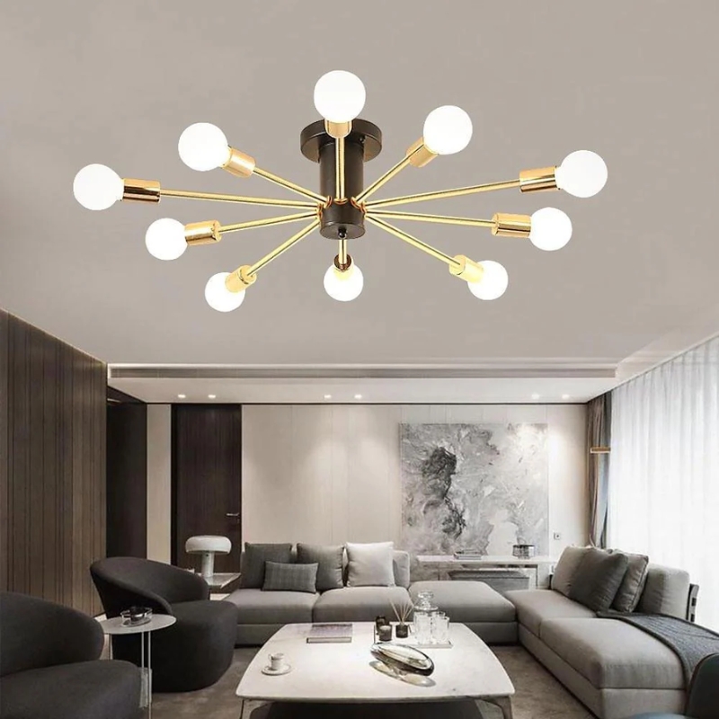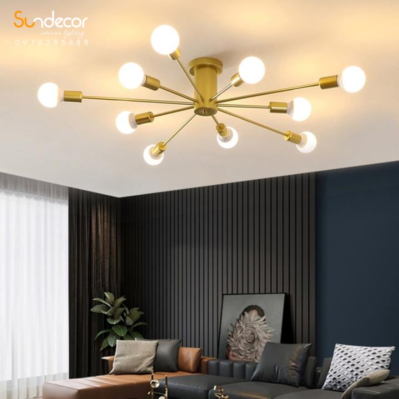 Lấy ý tưởng tạo hình từ bông hoa tuyết 10 bóng đèn nhỏ được sắp xếp cực kì cân đối xung quanh kết hợp màu sắc đen/vàng hoặc trắng/vàng huyền thoại sản phẩm tạo ra không gian vô cùng bắt mắt dễ dàng phù hợp với nhiều không gian của phòng khách, phòng ăn hay phòng ngủ
