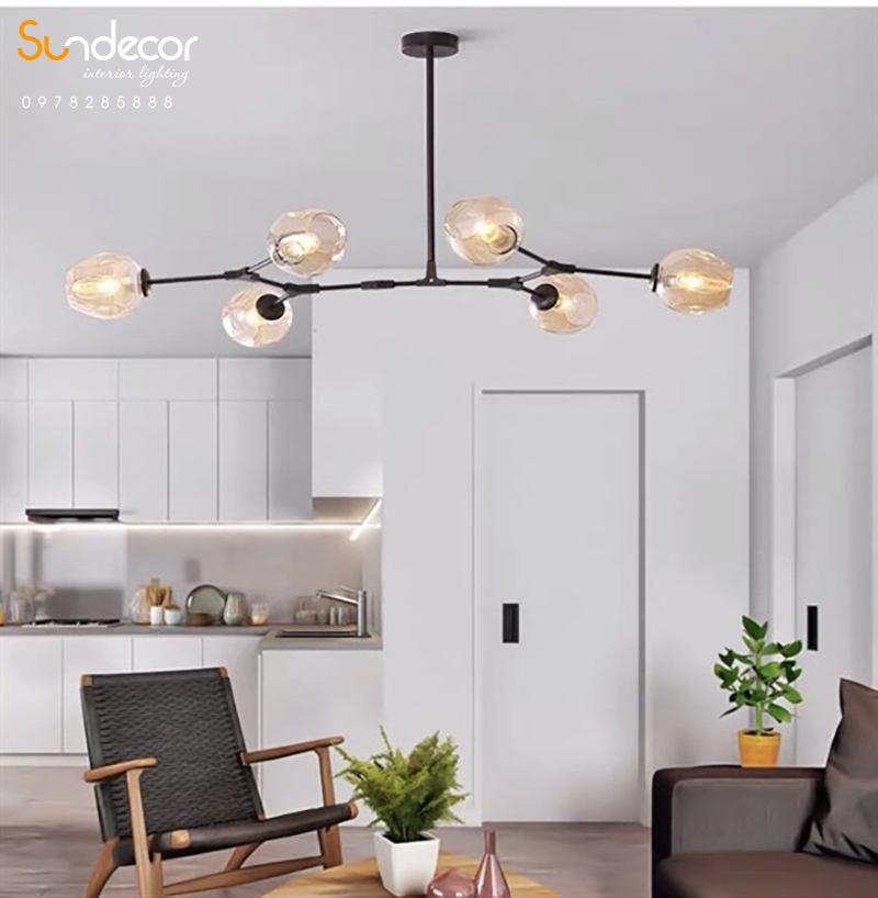 Đèn chùm Decor GP001TT-6B-KD  có 6 bóng đèn là 6 chao đèn, những chao đèn chính là biểu tượng cho phân tử hóa học giúp cho không gian nội thất của căn phòng được phá cách và mới mẻ!