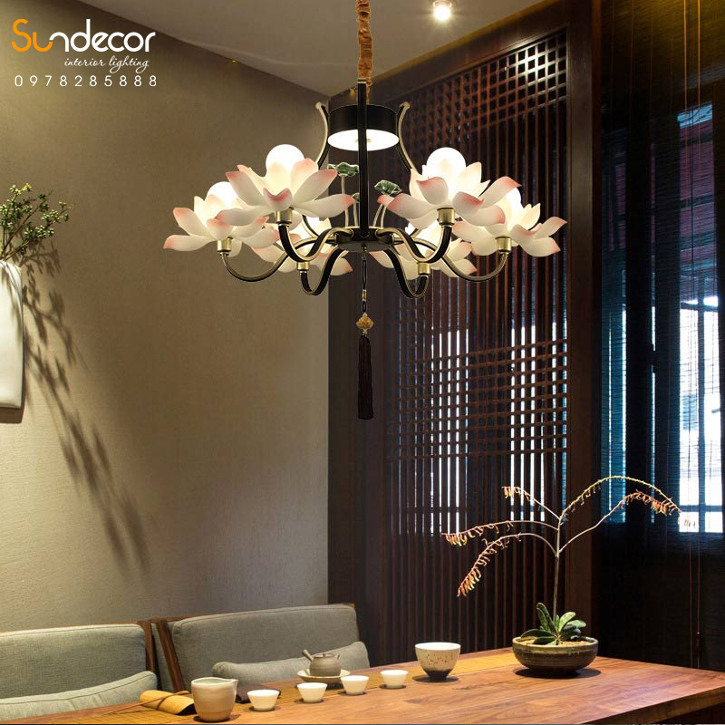Đèn chùm hoa sen là lựa chọn lý tưởng cho phòng thờ – nơi đề cao sự trang nghiêm, an tĩnh và thiền định. Ngoài ra, đèn cũng phù hợp với các không gian như nhà hàng, spa, resort, hoặc studio yoga mang phong cách Á Đông hay Phật giáo. Không chỉ là một thiết bị chiếu sáng, mẫu đèn này còn là điểm nhấn nghệ thuật góp phần lan tỏa giá trị văn hóa và tinh thần sâu sắc.