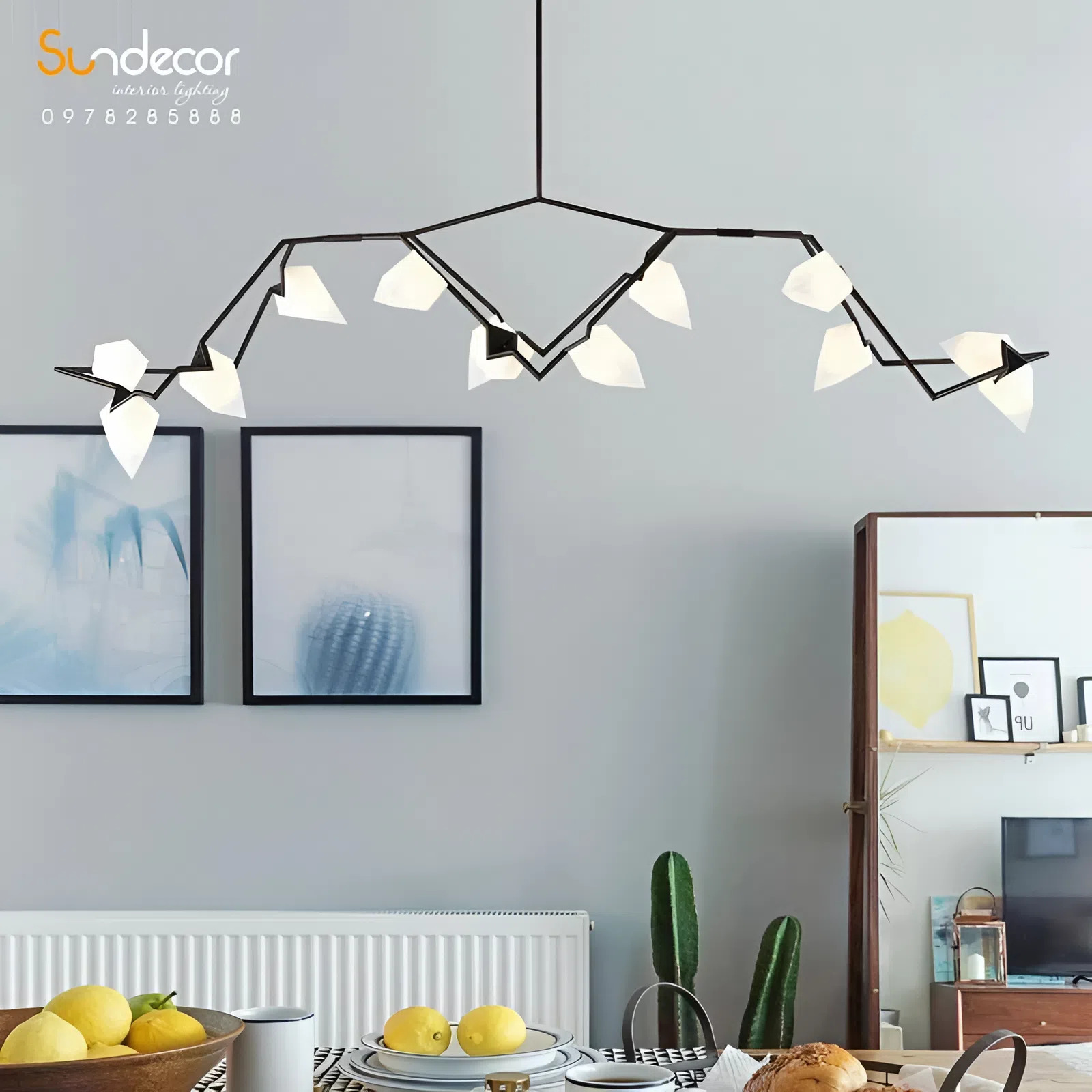 Đèn chùm trang trí phòng khách GP101TT-12BD được lấy cảm hứng từ những cánh lá vô cùng xinh đẹp. Những cánh lá như mang không gian của bạn trở nên gần gũi hơn với thiên nhiên. Bạn có thể tham khảo thêm nhiều mẫu sản phẩm tại đây!