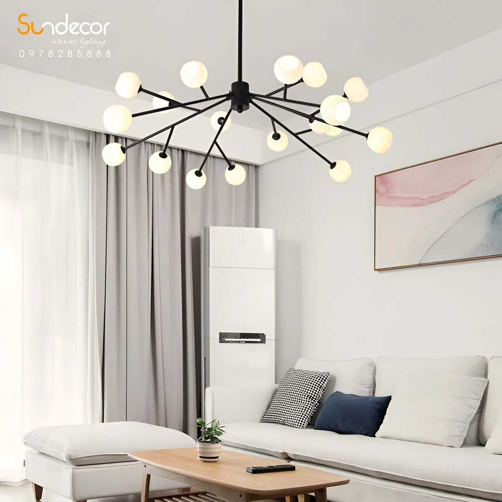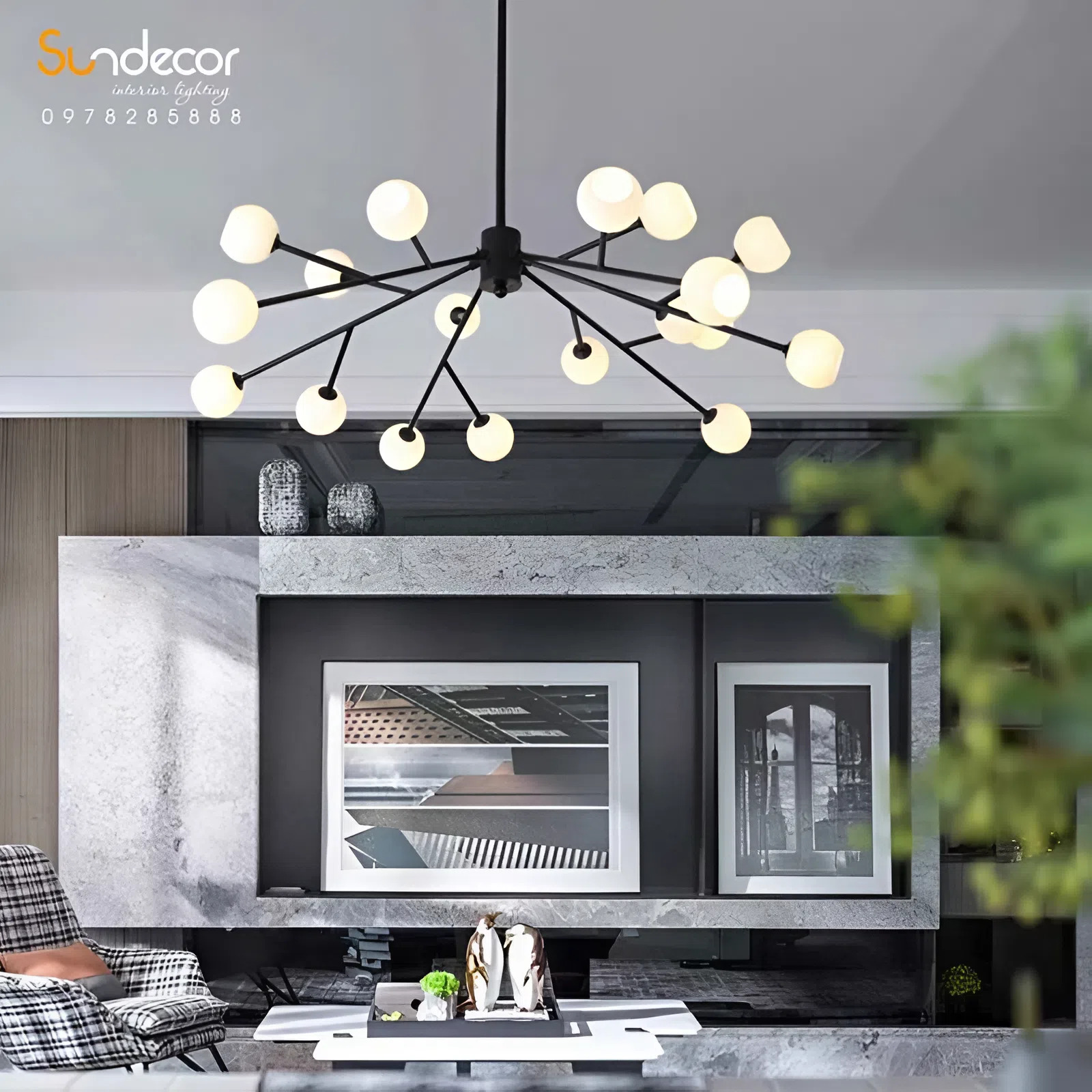 Lấy ý tưởng từ những bóng nước tròn sinh, bộ sản phẩm là sự sáng tạo tuyệt vời. Với mẫu đèn chùm này không gian sống của bạn dường như được tăng lên về mặt giá trị cũng như ý nghĩa. Nếu bạn yêu thích sự sáng tạo và trừu tượng thì đây là một mẫu Đèn chùm dành cho bạn.