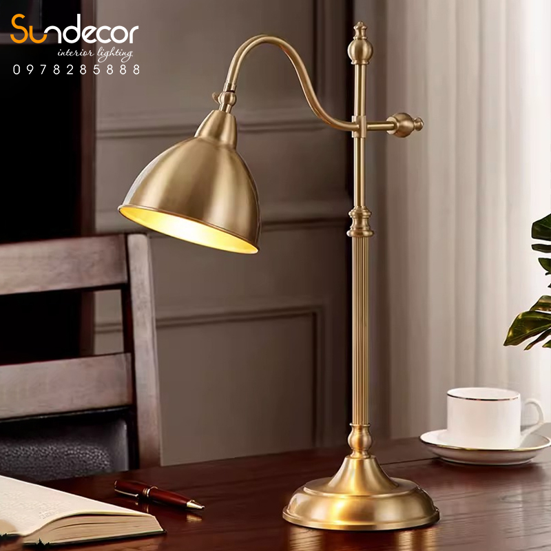 Nếu bạn thích một không gian có đôi phần cổ kính thì mẫu Đèn bàn trang trí này rất phù hợp với bạn. Đèn bàn có thiết kế khá đơn giản, màu sắc vàng đồng tạo điểm nhấn cho mọi không gian. Không chỉ vậy, bạn cũng có thể điều chỉnh độ cao của đèn theo ý muốn.