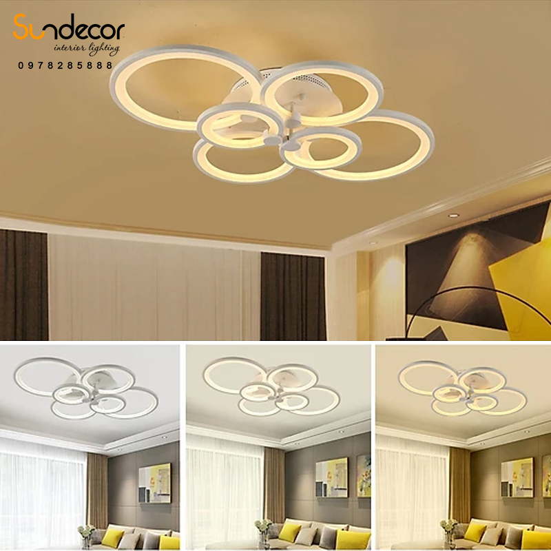 Đèn thiết kế dạng hình bầu dục với 6 cánh tròn nhiều kích thước. Các hình khối được sắp đặt khá cân đối cũng như mang tới sự hài hòa khi nhìn từ nhiều góc cạnh.