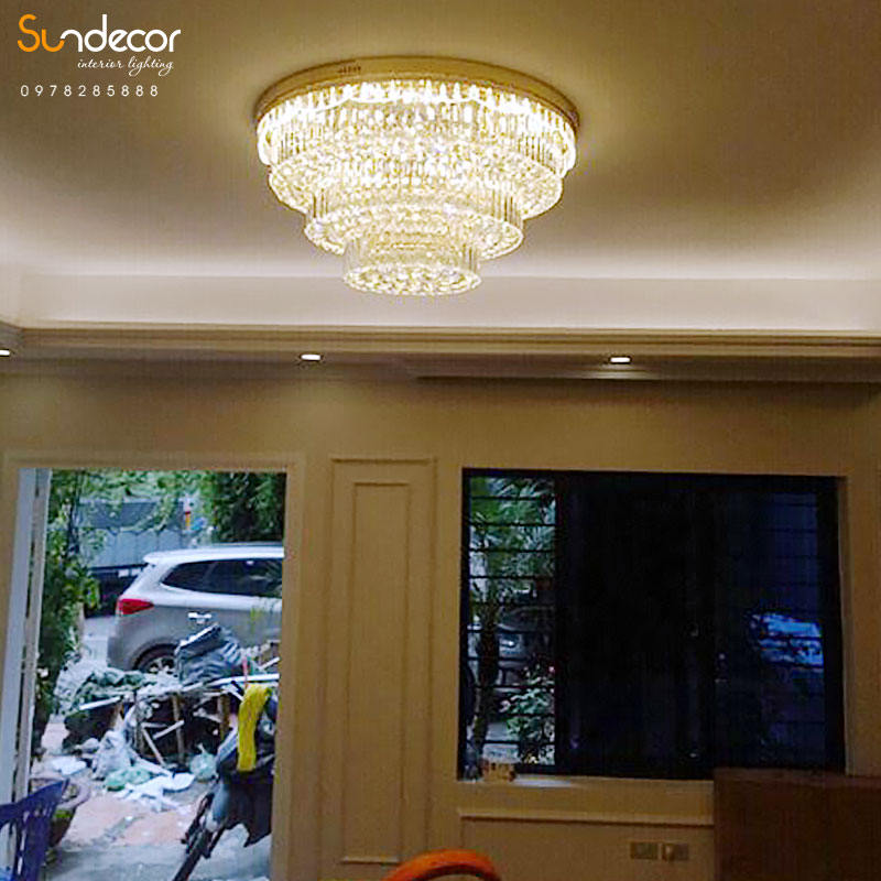 Đèn chùm phòng khách thiết kế đa tầng không chỉ mang lại ánh sáng mà còn góp phần định hình phong cách sống, gu thẩm mỹ của gia chủ. Từ vẻ đẹp sang trọng của pha lê đến sự tinh