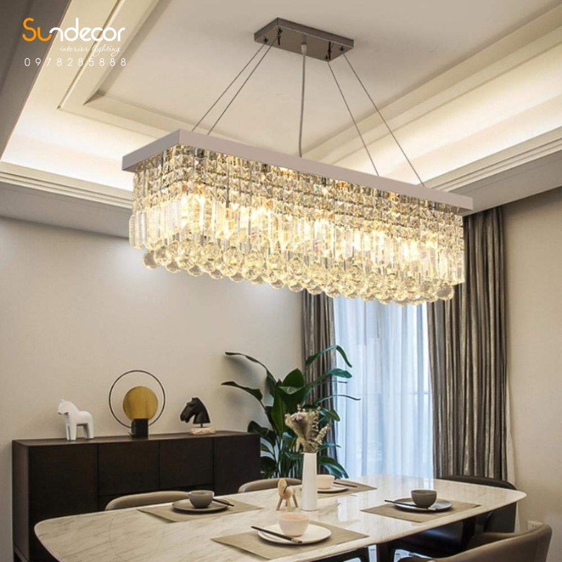 Vật liệu khung đèn: Thép không gỉ + pha lê K9 cao cấp