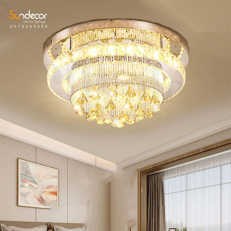 Mẫu đèn này được thiết kế vô cùng mới lạ và độc đáo, lấy cảm hứng từ những chiếc bánh kem nhiều tầng xinh đẹp, đèn được tạo nên với vô vàn những tinh thể pha lê lấp lánh, những viên pha lê này được mài dũa vô cùng tỉ mỉ không chút khuyết điểm đem đến vẻ đẹp hoàn mỹ cho sản phẩm.