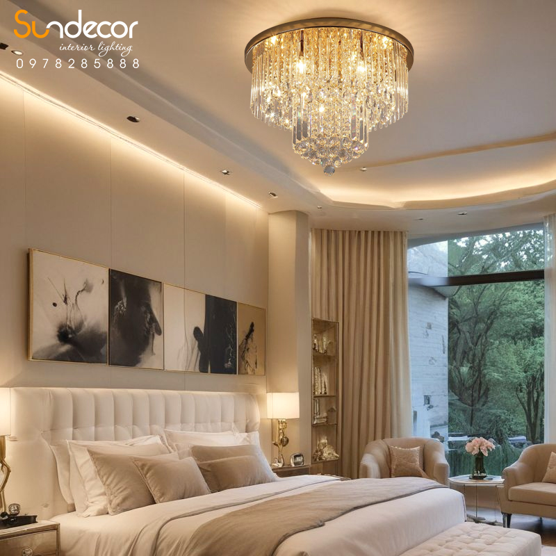 Sở hữu kiểu dáng gọn gàng ôm sát trần, chiếc đèn không chỉ tiết kiệm diện tích mà còn tối ưu hiệu quả chiếu sáng. Đây là lựa chọn lý tưởng cho phòng khách biệt thự, sảnh đón khách sạn hay không gian lễ tân cao cấp, nơi cần một điểm nhấn nghệ thuật đẳng cấp, góp phần nâng tầm giá trị thẩm mỹ cho ngôi nhà hiện đại.