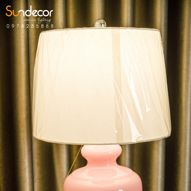 Mẫu đèn bàn nổi bật với thân đèn gốm cao cấp được chế tác theo khối dáng mềm mại, đối xứng, lấy cảm hứng từ những chiếc bình cổ phương Đông. Đường nét bo tròn uyển chuyển, bề mặt phủ lớp men bóng mịn sắc hồng phấn dịu mắt – vừa ngọt ngào, vừa trang nhã. Phần chao đèn màu trắng tinh khôi với hình trụ cổ điển giúp cân bằng tổng thể, tạo nên vẻ ngoài hài hòa và thanh thoát.