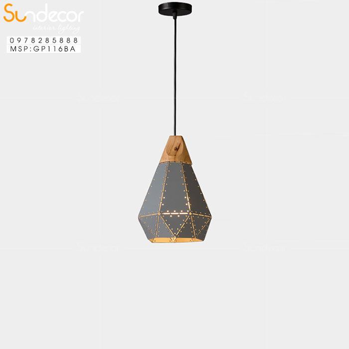 Đèn thả đèn thả kim cương GP116BA với thiết kế nổi bật mang hình dáng như một viên kim cương được phủ một lớp sơn màu ghi làm cho chiếc đèn thêm phần độc đáo và nổi bật.